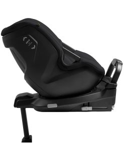 The seat is used rear facing only and has a 180 degree swivel function. Simply press a button and turn the seat towards the door for easy entry and exit with your child. Installation is quickly done with Isofix. Head support is easily adjustable with one hand in 12 different positions. Sleep position can be changed while driving and is also very generous since Spinkid 2 is approved from birth and the smallest children require more angle.